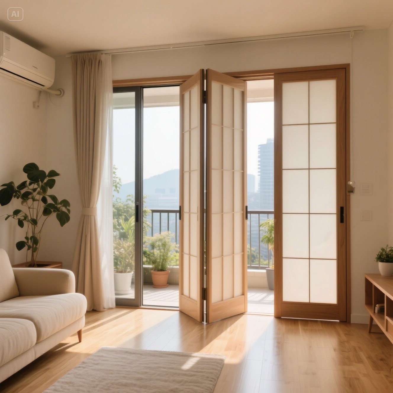 폴딩도어 시공 가격은 평균 1㎡당 35만~50만 원대입니다.